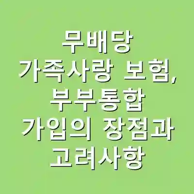 무배당 가족사랑 보험은 가족의 안전을 위한 보장 상품입니다. 부부통합 가입을 통해 보험료 절감과 보장 내용을 일원화할 수 있는 장점이 있습니다. 가입 시 주의해야 할 사항을 충분히 고려하여 안전하게 보장 계획을 수립하는 것이 필요합니다.