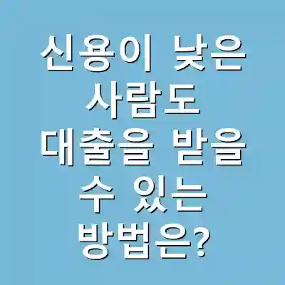 신용이 나쁜 사람도 대출을 받을 수 있는 방법이 있으며, 신용카드사용대출이 유용한 대안입니다. 대출 신청 시에는 정확한 정보와 필요한 서류를 준비해야 하며, 신중한 결정이 필요합니다.